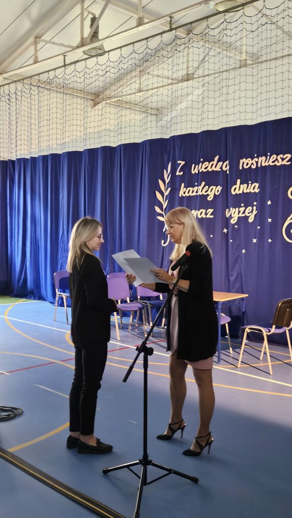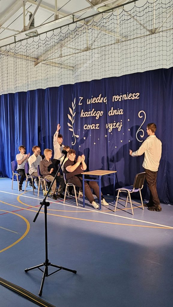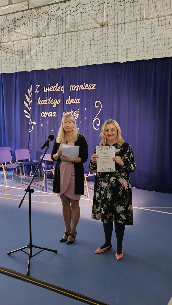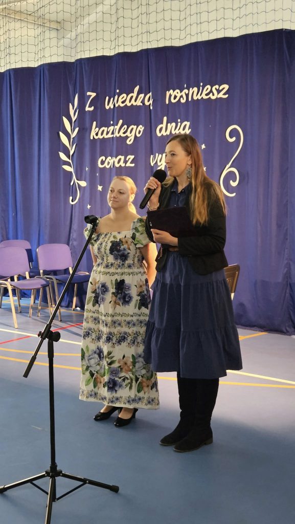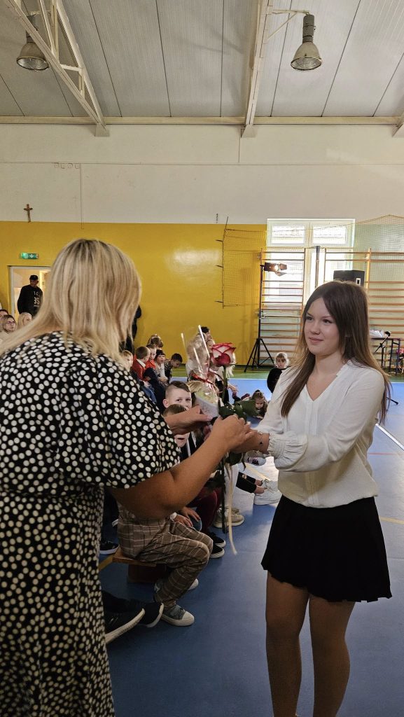 14 października 202514 października obchodziliśmy wyjątkowe święto – Dzień Edukacji Narodowej, czyli popularny Dzień Nauczyciela. Tego dnia szkoła wyglądała zupełnie inaczej niż zwykle – na korytarzach słychać było radosny gwar, a lekcje prowadzone były… przez samych uczniów! Choć na chwilę mogli oni wcielić się w rolę swoich nauczycieli i przekonać się, jak wymagająca, ale i satysfakcjonująca jest to praca. Uroczysty apel odbył się pod hasłem „Z wiedzą rośniesz każdego dnia coraz wyżej”. Część artystyczna w wykonaniu uczniów dostarczyła wielu wzruszeń i uśmiechów. Publiczność mogła obejrzeć scenkę kabaretową, pełną humoru i ciepłych odniesień do szkolnej codzienności. Przedszkolaki z ogromnym zaangażowaniem zaprezentowały swoje piosenki,a prawdziwą niespodzianką był koncert Adasia Golińskiego, który zachwycił wszystkich grą na gitarze. Podczas uroczystości Pani Dyrektor wręczyła nagrody wyróżnionym nauczycielom, dziękując im za codzienny trud, pasję i oddanie w pracy z uczniami. Nie zabrakło również serdecznych życzeń, kwiatów i ciepłych słów, które popłynęły od uczniów i rodziców. Ten dzień był pełen radości, wdzięczności i wzajemnego szacunku. Pokazał, jak ważną rolę w życiu każdego z nas odgrywa edukacja i jak wiele możemy osiągnąć, gdy uczymy się z sercem.