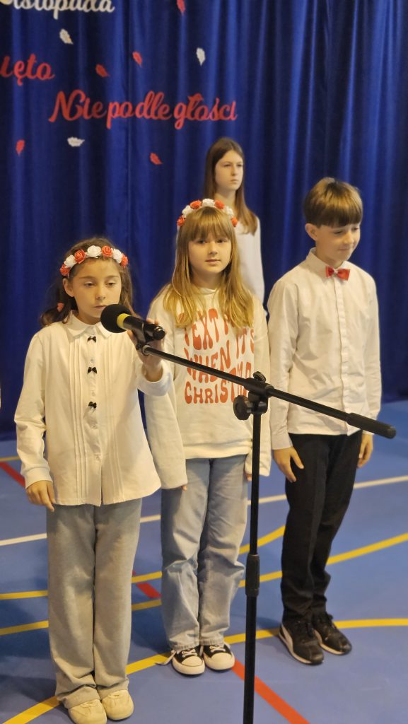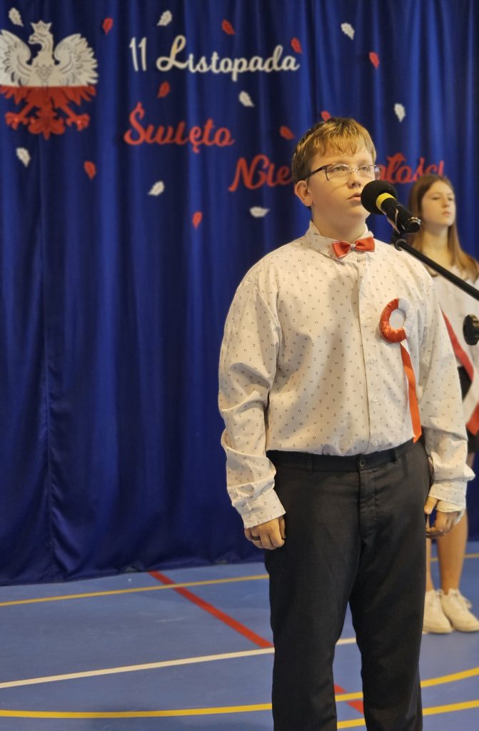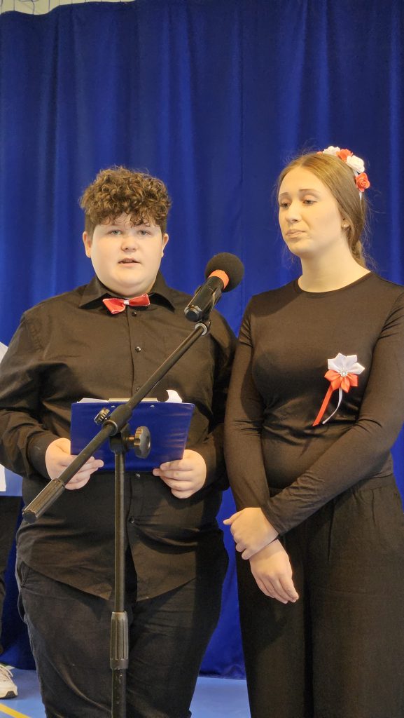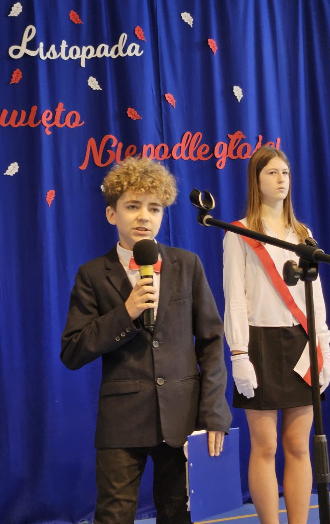7 listopada 2025W dniu 7 listopada w naszej szkole odbył się wyjątkowo uroczysty apel, upamiętniający 107. rocznicę odzyskania przez Polskę niepodległości.Uroczystość rozpoczęła się zgodnie z tradycją od wprowadzenia flagi szkoły oraz podniosłego, wspólnego odśpiewania hymnu państwowego w ramach ogólnopolskiej akcji „Szkoła do hymnu”.Następnie uczniowie zaprezentowali wzruszającą część artystyczną. W programie znalazły się piękne recytacje wierszy oraz pieśni patriotyczne, takie jak „Rota”, marszowa „Szara Piechota” i symboliczna „My, Pierwsza Brygada”. Szczególnie wzruszający był występ Michała, który zaśpiewał pieśń „Dziś idę walczyć mamo”, spotykając się z dużym uznaniem publiczności. Występy te wprowadziły wszystkich w głęboki, refleksyjny nastrój, przypominając nam o najwyższej wartości wolności i miłości do Ojczyzny.Na zakończenie głos zabrała Pani Dyrektor, która serdecznie podziękowała uczniom oraz nauczycielom za zaangażowanie w przygotowanie apelu i podkreśliła kluczowe znaczenie pielęgnowania pamięci o historii naszego kraju.