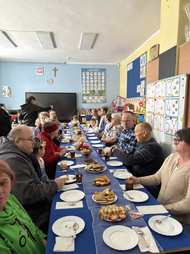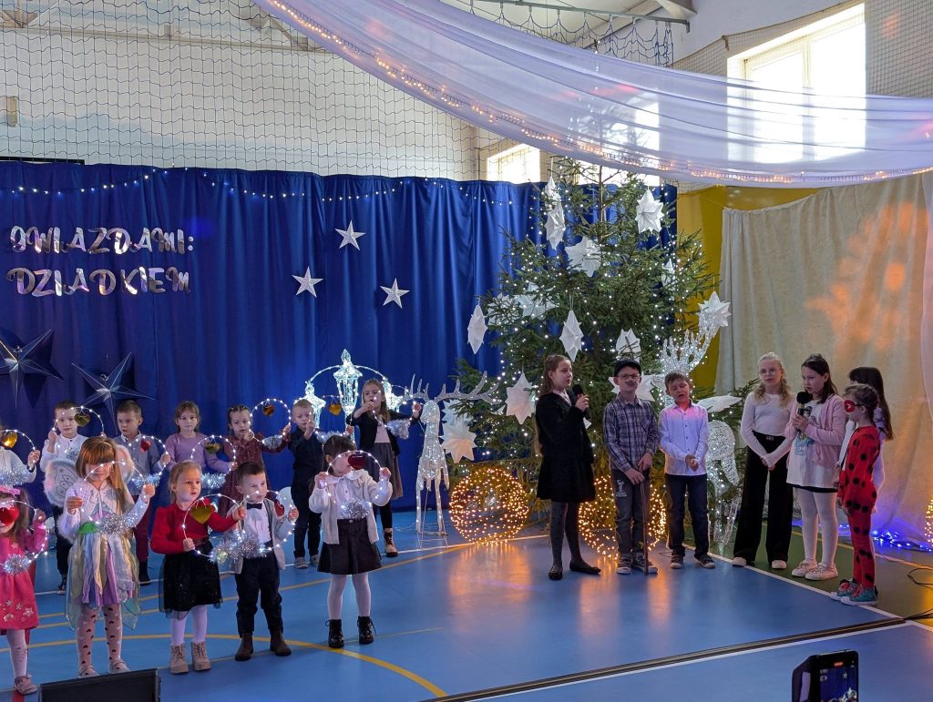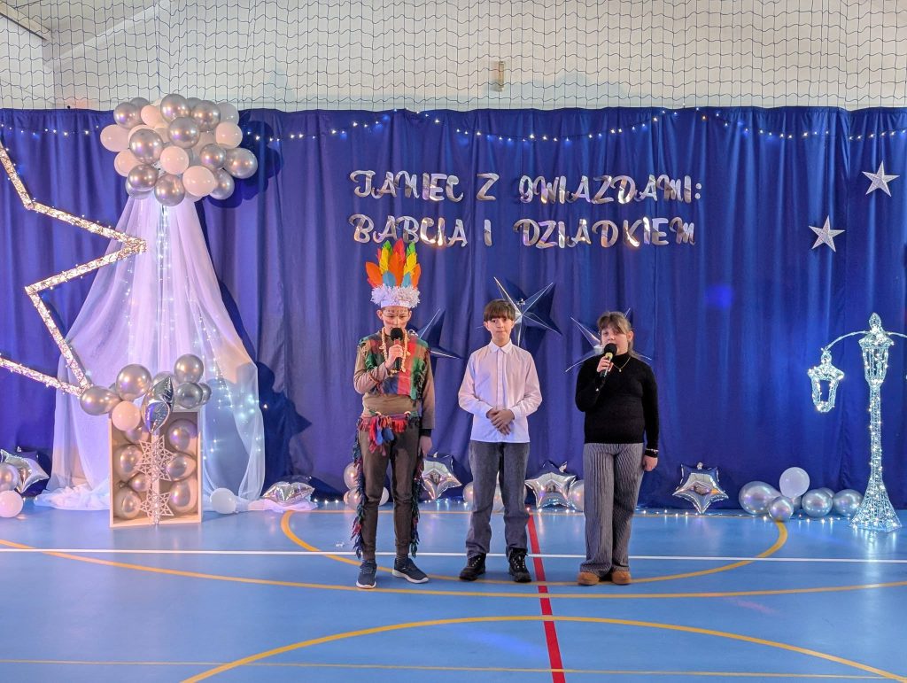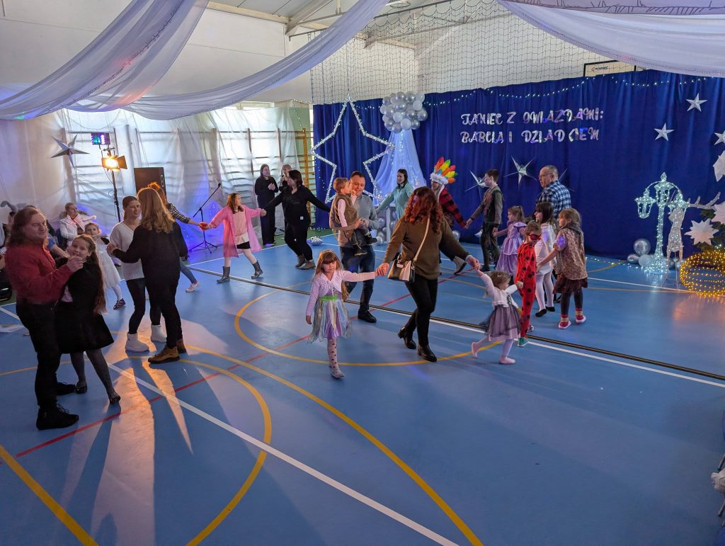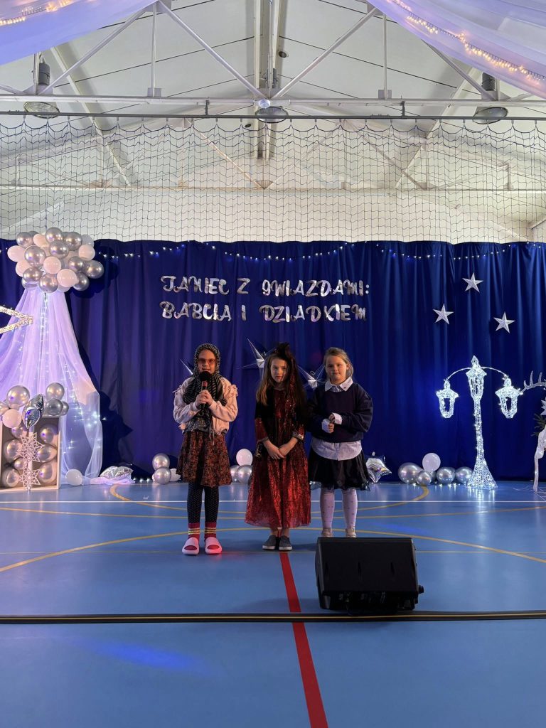 31 grudnia 202517 stycznia 2026 odbył się bal karnawałowy pod hasłem „Taniec z gwiazdami: Babcią i Dziadkiem”. Wydarzenie zgromadziło liczne grono uczniów, rodziców oraz zaproszonych gości – babcie i dziadków, którzy tego dnia stali się prawdziwymi gwiazdami parkietu. Uroczystość rozpoczęła się wyjątkową częścią artystyczną, która od samego początku wprowadziła zgromadzonych w podniosły i radosny nastrój. Uczniowie z dużym zaangażowaniem zaprezentowali przygotowane specjalnie na tę okazję piosenki oraz krótkie wierszyki, które spotkały się z ciepłym przyjęciem publiczności. Występy były różnorodne i pełne emocji, a młodzi artyści wykazali się nie tylko talentem, lecz także odwagą sceniczną i starannym przygotowaniem. Zwieńczeniem części artystycznej był niezwykle efektowny występ ucznia klasy szóstej, który wykonał na gitarze elektrycznej utwór „One Day” Gary’ego Moore’a. Dynamiczna i pełna ekspresji interpretacja przyciągnęła uwagę wszystkich obecnych i wywołała ogromny entuzjazm wśród publiczności, nagradzającej młodego muzyka gromkimi brawami. Ten finałowy występ na długo pozostanie w pamięci uczestników uroczystości, stanowiąc jej szczególnie wyjątkowy i wzruszający moment. Po zakończeniu części artystycznej goście zostali zaproszeni na poczęstunek przygotowany przez Radę Rodziców, który stał się okazją do wspólnych rozmów i integracji. Następnie rozpoczęła się radosna zabawa taneczna poprowadzona przez profesjonalnych animatorów, którzy z dużym zaangażowaniem zachęcali dzieci i dorosłych do wspólnego tańca. Różnorodne układy taneczne, uśmiechy na twarzach uczestników oraz dobra, energetyczna muzyka sprawiły, że wydarzenie upłynęło w wyjątkowo ciepłej, rodzinnej i pełnej radości atmosferze. Wspólna zabawa była doskonałym zwieńczeniem spotkania i sprawiła, że ferie zimowe rozpoczęliśmy w tanecznym rytmie, z pozytywną energią i w doskonałych nastrojach Serdecznie dziękujemy za przybycie drogich Babć i Dziadków oraz za wspólne świętowanie Waszego dnia. Życzymy Wam, aby życie było pełne ciepłych wspomnień, radosnych chwil i miłości, która nigdy nie gaśnie. Niech zdrowie zawsze Wam dopisuje, a każdy dzień przynosi nowe powody do uśmiechu. Wszystkiego najlepszego!