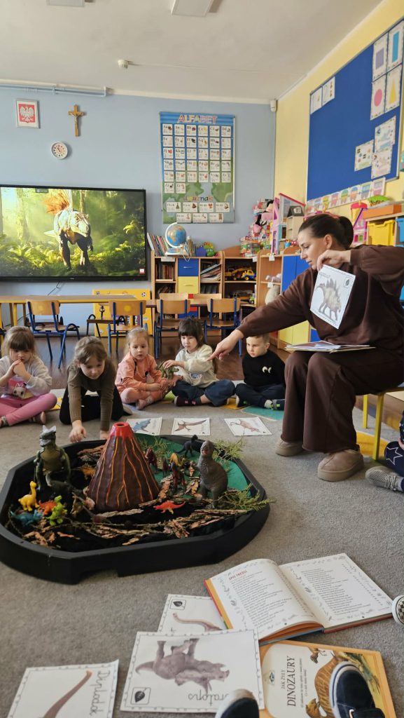 Dzisiejszy dzień w przedszkolu w Boćwince był pełen niezwykłych przygód, radości i odkryć. Dzieci odbyły fascynującą podróż w czasie aż o 65 milionów lat wstecz do niezwykłej krainy dinozaurów.