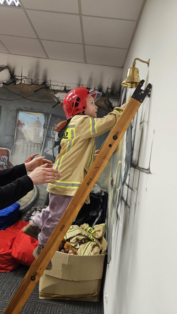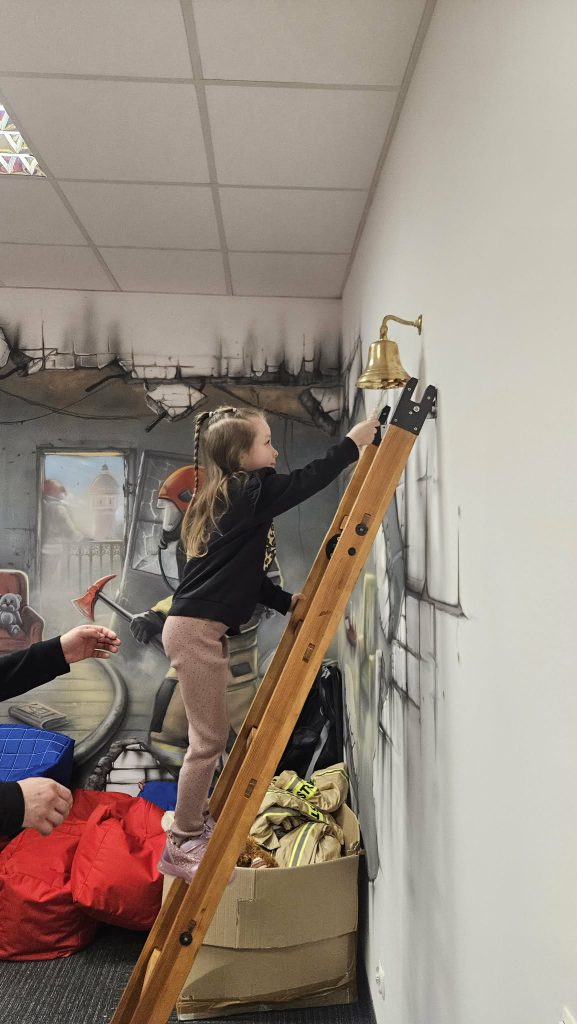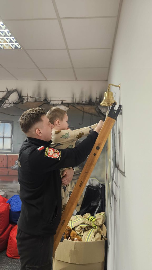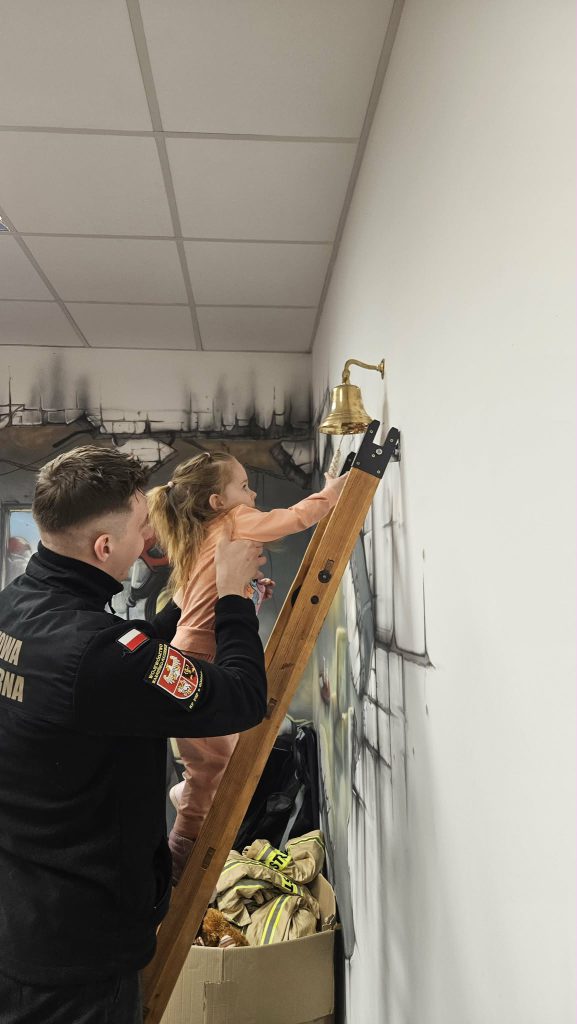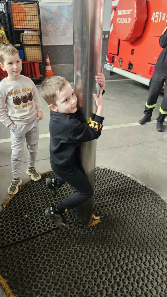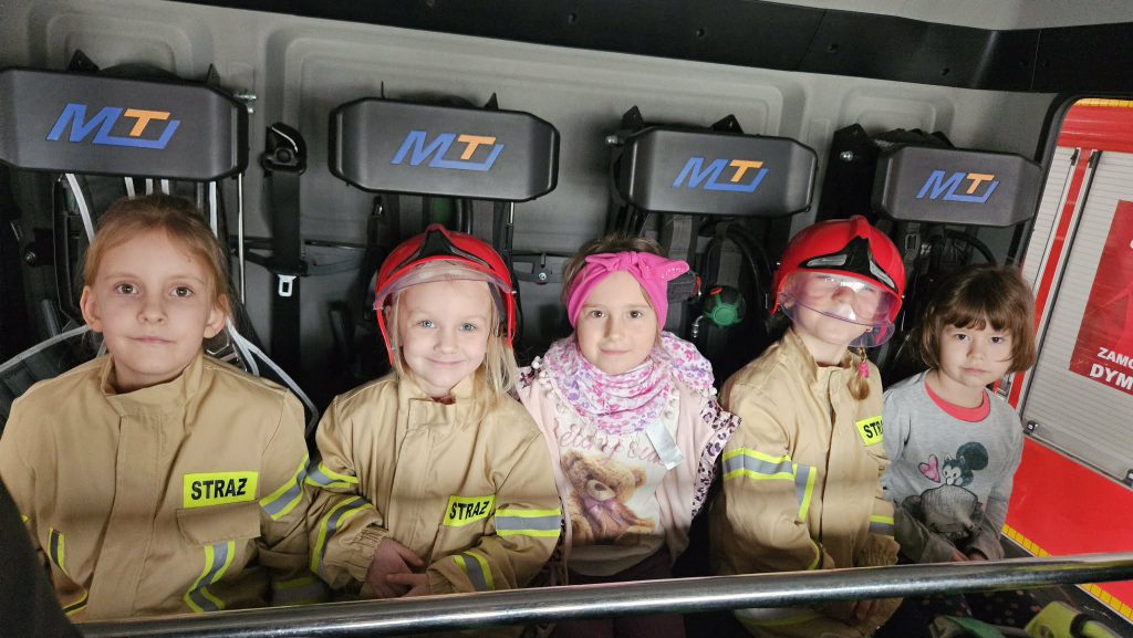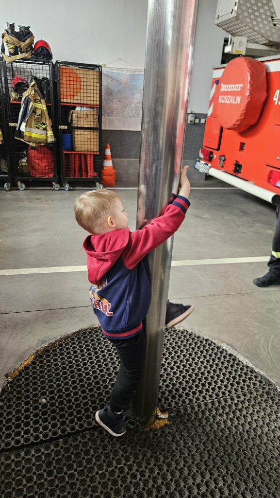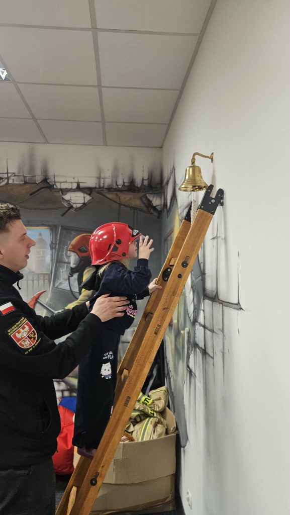 Kolejnym punktem wizyty było zwiedzanie strażnicy. Dzieci mogły z bliska obejrzeć wozy strażackie oraz sprzęt wykorzystywany podczas akcji ratowniczych. Największą radość sprawiła im możliwość wejścia do środka wozu i poczucia się przez chwilę jak prawdziwi strażacy.